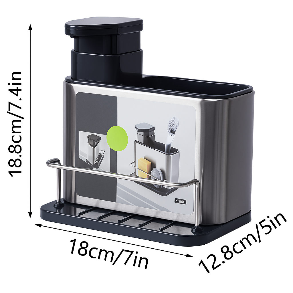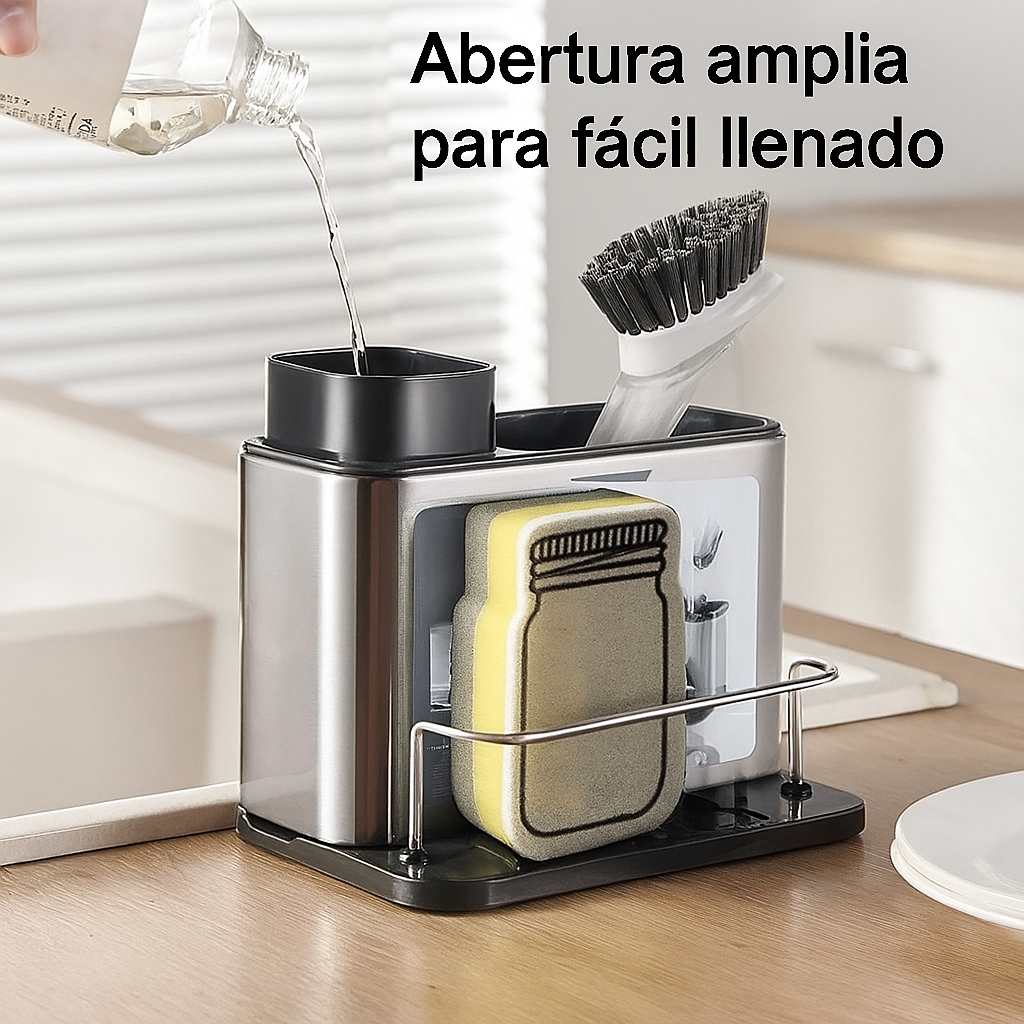 Dispensador y Organizador de Acero Inoxidable 3 en 1 – Sin electricidad